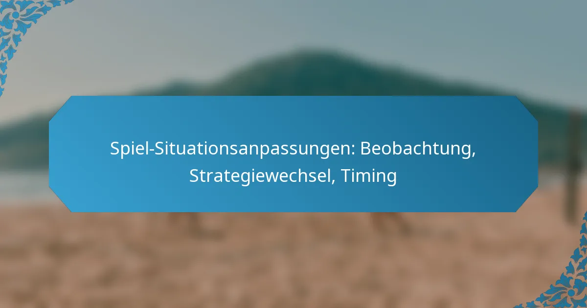 Spielanpassungen sind entscheidend, um die Teamleistung während eines Spiels zu maximieren, da sie strategische Änderungen beinhalten, die als Reaktion auf Echtzeitbeobachtungen der Spielabläufe vorgenommen werden. Durch die genaue Beobachtung der Spielerinteraktionen und externer Faktoren können Teams ihre Taktiken effektiv anpassen, um ihre Erfolgschancen zu erhöhen und auf die Strategien des Gegners zu reagieren.